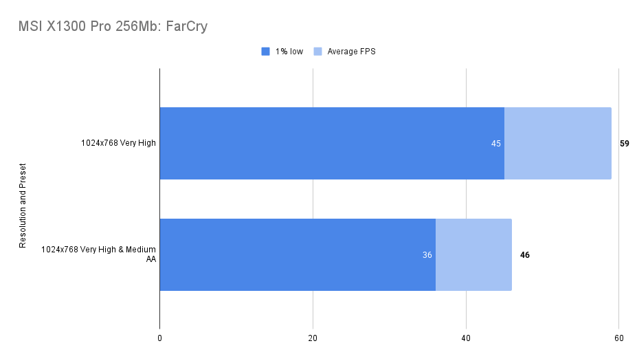 Setting everything to full at 1024 x 768 and this card would barely drop below the maximum frame cap of 60fps at any point.