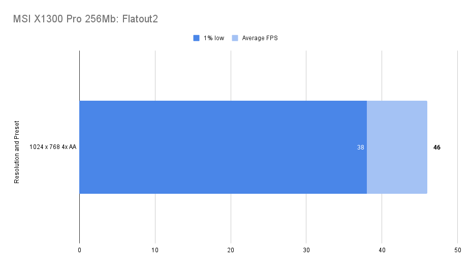 A very good result really but, I guess things did move on fast in the early 2000’s. I used to pay this on an old Geforce2 MX400 so it’s no surprise really that the X1300 Pro doesn’t break a sweat.