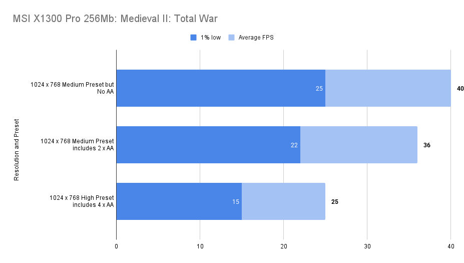 I tried this out at 1024 x 768 Medium and things ran quite well, disabling AA didn’t have too much effect.