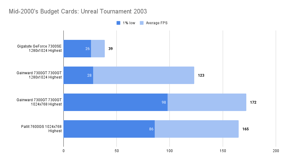 Even the 7300GT struggles a little with this test at 1024 x 768 Resolution but the 17 FPS is a great result considering what is asked of it.