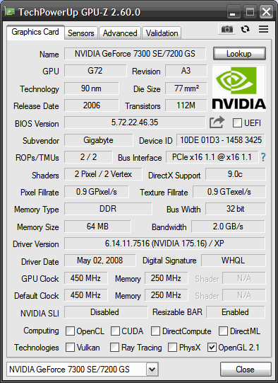 | Gigabyte GeForce 7300SE | GeForce 6500 | Lenovo X1300 | |
