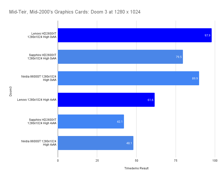 The extra VRAM rarely sees full utilization in earlier games, with Doom 3 standing out as a rare exception and even then, it has it’s own special mode.