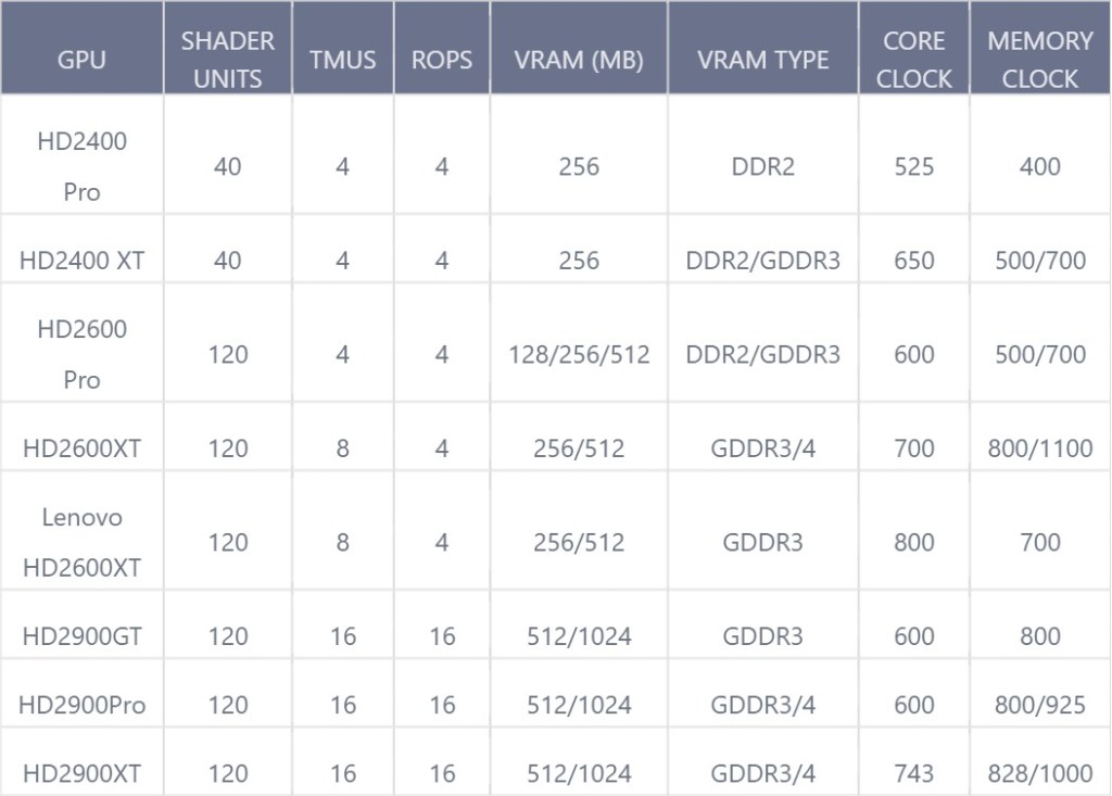 - R600 (HD 2900): The flagship, built for raw power, equipped with a massive 512-bit memory bus and workstation-class ambitions, though it notably omitted dedicated hardware UVD.