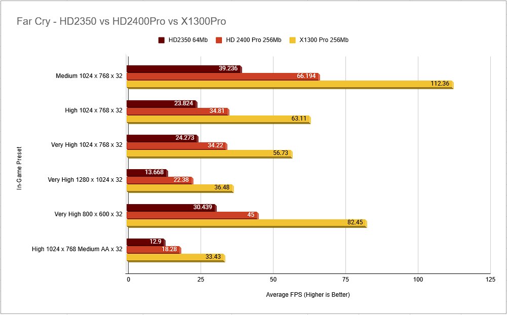 I chose this test and setting as I have the data from the X1300 Prop tested previously, an easy extra point of reference then to see how these cards compare to their direct predecessors.