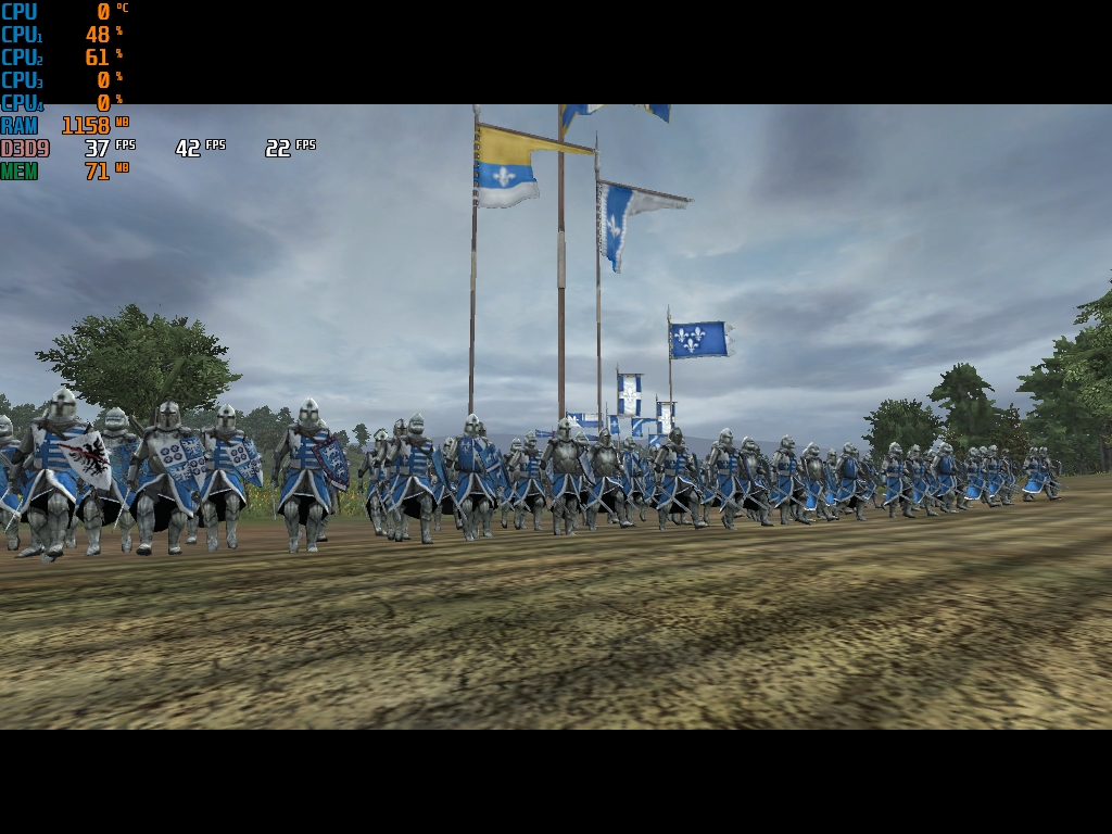 The benchmark run is just the intro for the Agincourt historical battle, it seems to use the in-game engine to generate the battle and it’s at least completely fair – trying to repeat a benchmark run in this is unlikely to be easily done.