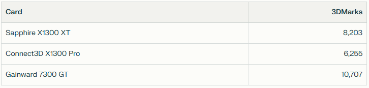 It also pulls ahead of the X1300Pro by a decent margin, features over raw clock speed in this one it seems.