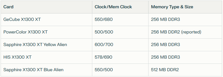 A roundup of X1300XT’s as referenced earlier: