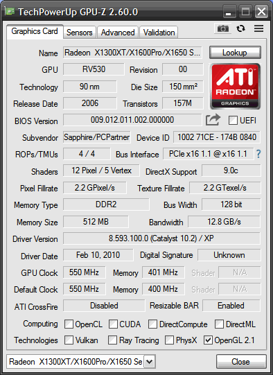 Built around the RV530 GPU used in the Radeon X1600‑series cards, this mid‑range core squietly did the heavy lifting in OEM and retail systems that needed “real” 3D without paying X1800 money.